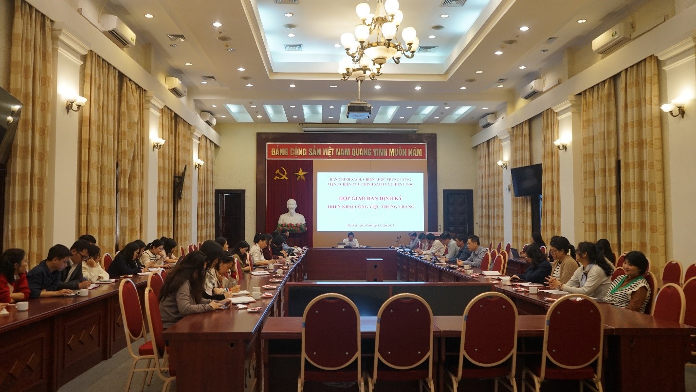 Chiều ngày 09/12/2025, Viện Nghiên cứu Chính sách và Chiến lược (IPSS) đã tổ chức cuộc họp giao ban định kỳ nhằm đánh giá kết quả công tác tháng 11 và triển khai nhiệm vụ trọng tâm trong tháng 12. Đồng chí Nguyễn Đức Hiển, Phó Trưởng Ban Chính sách, chiến lược Trung ương chủ trì cuộc họp. Cuộc họp có sự tham dự của các đồng chí Lãnh đạo Viện, lãnh đạo các phòng cùng toàn thể viên chức và người lao động.