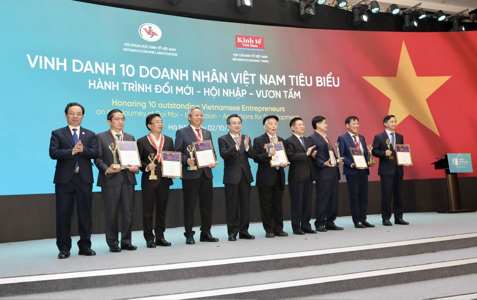 Tiếp đó, dưới sự chứng kiến của Phó Thủ tướng Hồ Đức Phớc và Trưởng Ban Chính sách, chiến lược Trung ương Nguyễn Thanh Nghị, Hội khoa học Kinh tế Việt Nam và Tạp chí Kinh tế Việt Nam đã vinh danh 10 doanh nhân Việt Nam tiêu biểu trong hành trình Đổi mới - Hội nhập - Vươn tầm của đất nước, những người tiên phong kiến tạo nền kinh tế thị trường, mang khát vọng dân tộc trong từng bước phát triển doanh nghiệp. Đây không chỉ là sự ghi nhận những đóng góp to lớn mà còn là sự khẳng định mạnh mẽ cho vai trò trung tâm của doanh nhân trong tương lai phát triển đất nước.