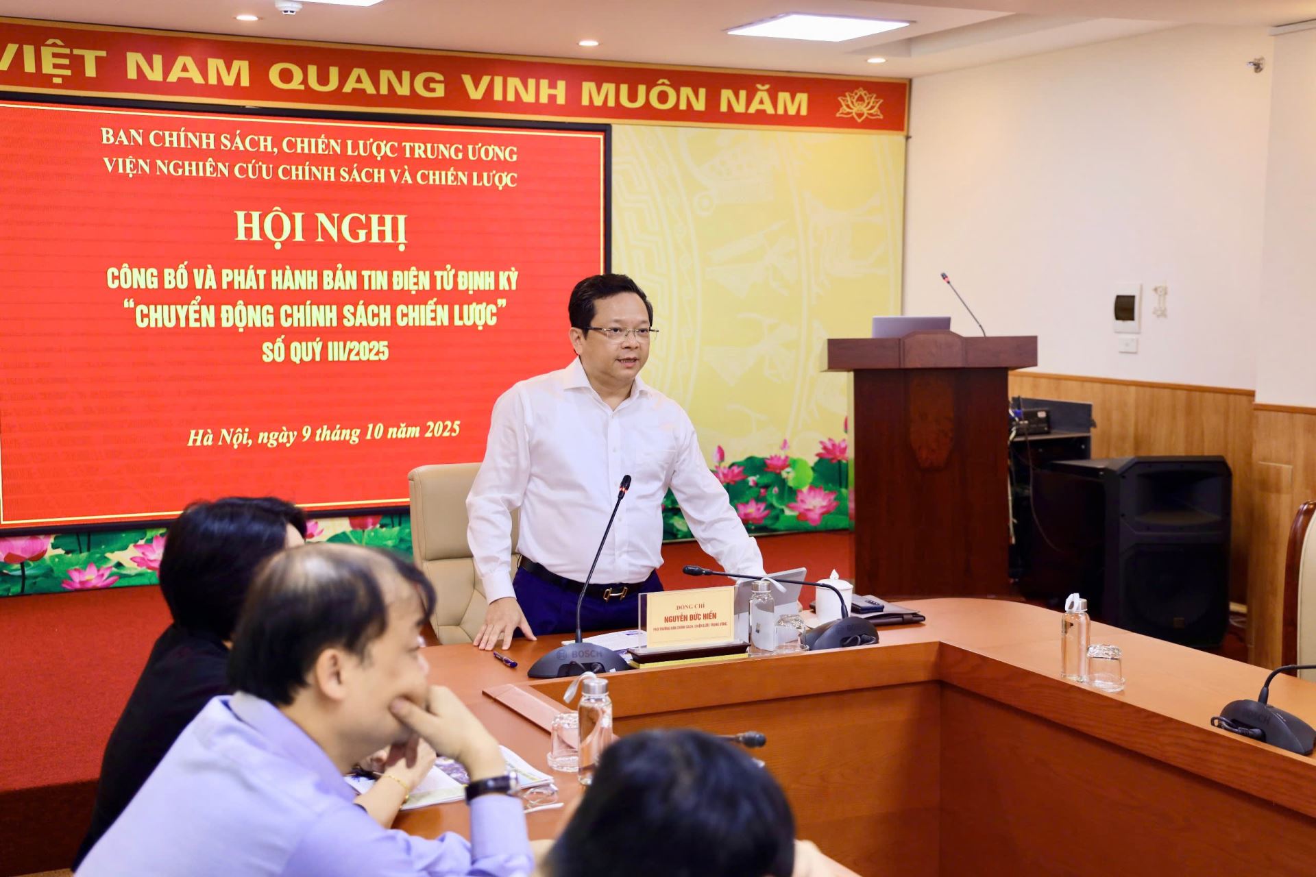 Sáng 9/10/2025, Ban Chính sách, chiến lược Trung ương tổ chức Hội nghị công bố và phát hành Bản tin điện tử định kỳ về “Chuyển động chính sách, chiến lược” (Strategy E-bulletin) Quý III/2025 do Viện Nghiên cứu Chính sách và Chiến lược chủ trì thực hiện.