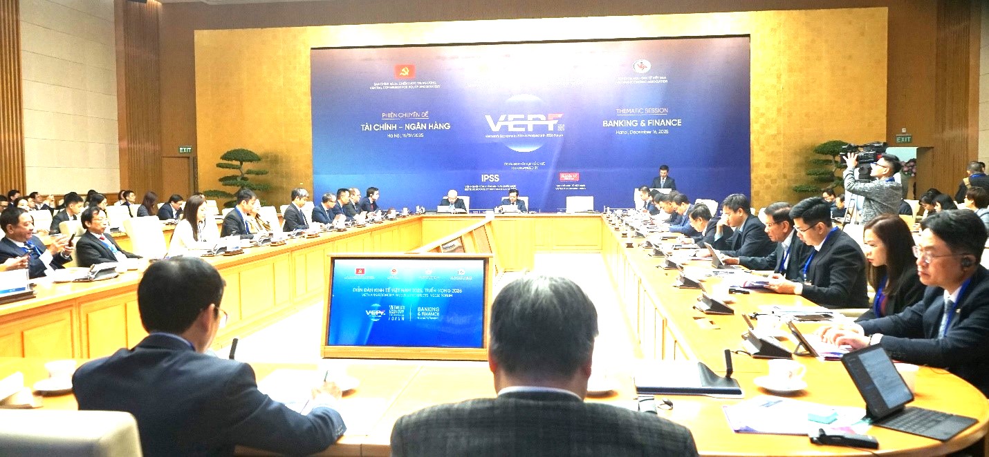 Trong khuôn khổ Diễn đàn, buổi sáng cùng ngày đã diễn ra 2 Phiên chuyên đề. Phiên chuyên đề về Tài chính - Ngân hàng với chủ đề “Huy động và sử dụng hiệu quả các nguồn lực tài chính cho mục tiêu tăng trưởng kinh tế giai đoạn 2026-2030” do Ban Chính sách, chiến lược Trung ương phối hợp cùng Bộ Tài chính và Ngân hàng Nhà nước Việt Nam tổ chức dưới sự chủ trì của các đồng chí: Nguyễn Đức Hiển, Phó Trưởng Ban Chính sách Chiến lược Trung ương; Đỗ Thành Trung, Thứ trưởng Bộ Tài chính; Phạm Thanh Hà, Phó Thống đốc Ngân hàng Nhà nước Việt Nam. Trong Phiên chuyên đề Tài chính – Ngân hàng có 04 tham luận chính được trình bày. Theo đó, TS. Cấn Văn Lực, Thành viên Hội đồng Tư vấn Chính sách của Thủ tướng Chính phủ, Chuyên gia kinh tế trưởng Ngân hàng BIDV trình bày về nhu cầu vốn và khả năng huy động nguồn tài lực phục vụ tăng trưởng cao giai đoạn 2026-2030. Bà Nguyễn Hoài Thu, Tổng Giám đốc Khối Đầu tư chứng khoán, VinaCapital đề cập đến tiềm năng huy động vốn cho phát triển khu vực tư nhân thông qua thị trường chứng khoán. Bà Hà Thu Giang, Vụ trưởng Vụ Tín dụng các ngành kinh tế, Ngân hàng Nhà nước Việt Nam chia sẻ về vai trò của tín dụng ngân hàng góp phần thúc đẩy tăng trưởng hai con số giai đoạn 2026-2030. Ông Bùi Hoàng Hải, Phó Chủ tịch Ủy ban Chứng khoán Nhà nước, Bộ Tài chính đề xuất định hướng và giải pháp để đưa thị trường vốn trở thành trụ cột quan trọng trong huy động và phân bổ nguồn lực tài chính cho hiện thực hóa mục tiêu tăng trưởng “2 con số” giai đoạn 2026 – 2030.