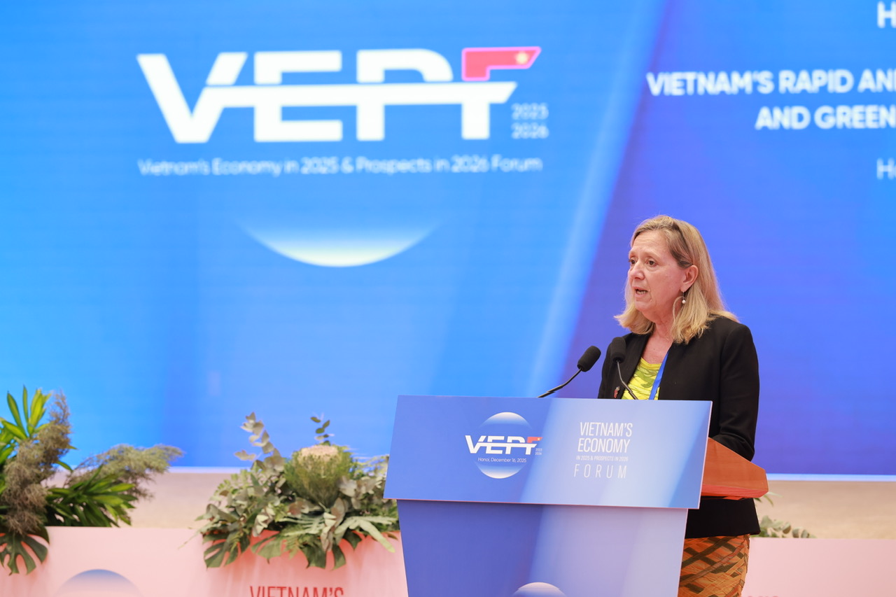 Trong Phiên tham luận chính đã có 03 tham luận được trình bày. Trong tham luận đầu tiên, Bà Mariam Sherman, Giám đốc Quốc gia Ngân hàng Thế giới tại Việt Nam chia sẻ về Kinh tế thế giới và Việt Nam 2025, triển vọng và khuyến nghị chính sách cho giai đoạn 2026-2030. Tham luận khuyến nghị Việt Nam tiếp tục phát huy mạnh mẽ khu vực kinh tế tư nhân; tập trung vào con người và công nghệ; phát triển hạ tầng bền vững và tăng trưởng xanh; đảm bảo phân bổ công bằng những thành quả của tăng trưởng và hiện đại hóa về thể chế. Để thành công, Việt Nam cần xác định: mục tiêu và lộ trình rõ ràng; nhất quán chặng đường cải cách.