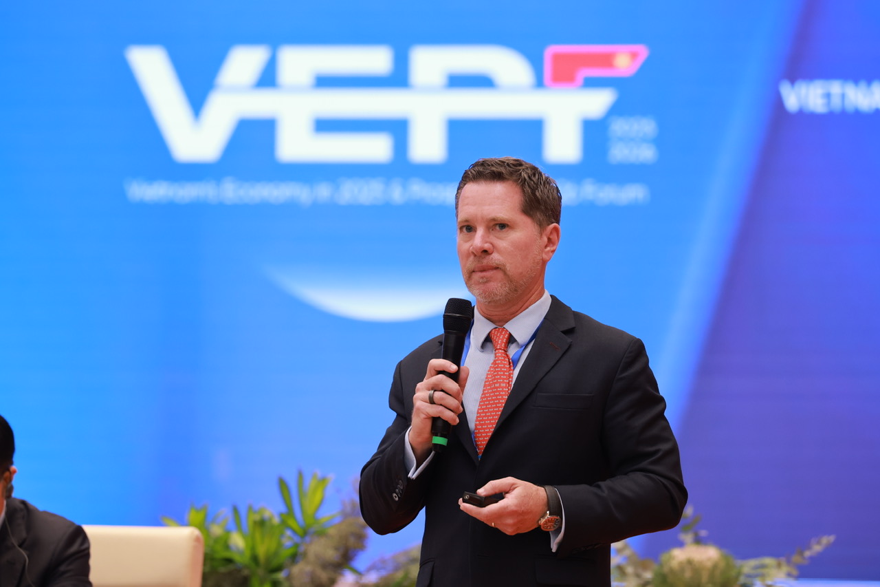 Ông Tim Evans, Tổng giám đốc (CEO) HSBC tại Việt Nam cung cấp thêm cách tiếp cận đa chiều và thực tiễn với tham luận với chủ để “Tiếp sức hành trình tăng trưởng: Huy động nguồn lực tài chính cho tăng trưởng cao và phát triển bền vững tại Việt Nam trong giai đoạn 2026-2030”. Trong đó nhấn mạnh Việt Nam nên tiếp tục đa dạng hóa và các kênh huy động được tối ưu, nền tảng đầu tư sẽ được mở rộng, qua đó tạo dư địa cấp vốn cho nhiều dự án hơn để tài trợ cho các dự án hạ tầng; áp dụng các chuẩn mực toàn cầu là yêu cầu cần thiết. Bên cạnh đó, để tiếp cận thị trường vốn quốc tế, doanh nghiệp Việt Nam cần nâng cao năng lực quản trị, áp dụng thông lệ quốc tế, cải thiện chất lượng báo cáo tài chính và ESG; đồng thời đẩy mạnh chuyển đổi số, đặc biệt trong bối cảnh bùng nổ công nghệ và AI. Song song đó là củng cố cơ cấu vốn, đa dạng hóa kênh huy động từ tín dụng, trái phiếu đến thị trường vốn.