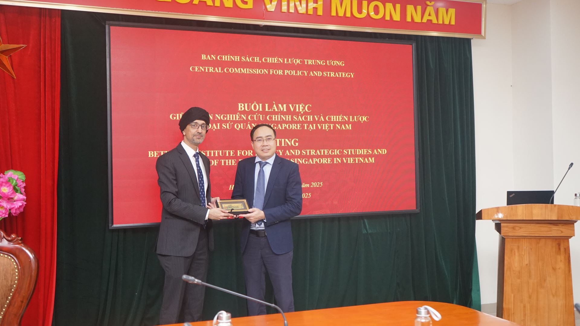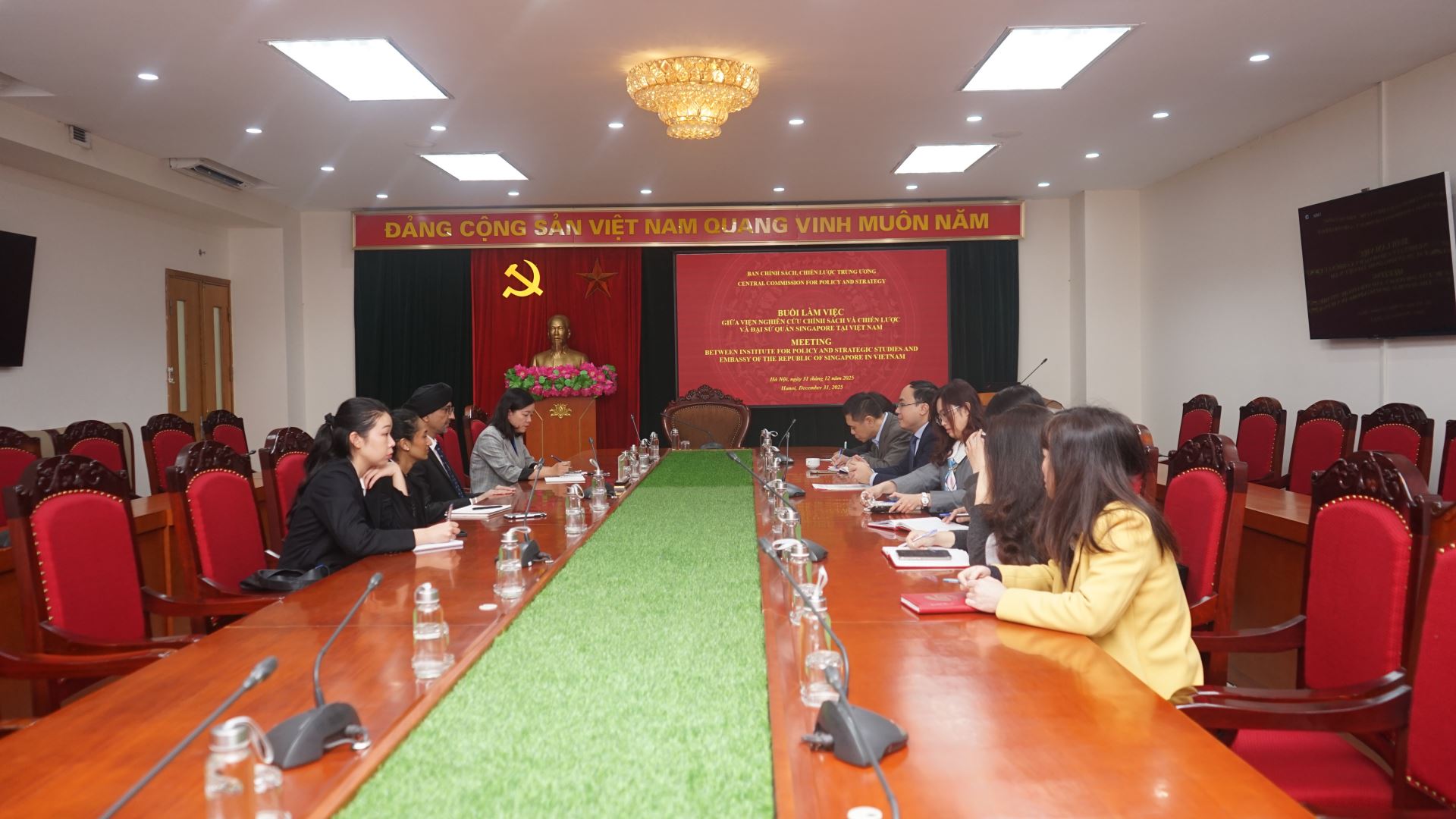 Sáng ngày 31/12/2025, tại Hà Nội, theo Thư đề nghị của Đại sứ quán Singapore tại Việt Nam, đồng chí Đặng Đức Anh, Quyền Viện trưởng Viện Nghiên cứu Chính sách và Chiến lược, Ban Chính sách, chiến lược Trung ương đã tiếp và làm việc với Đại sứ quán Singapore tại Việt Nam do ông Rajpal Singh, Đại sứ đặc mệnh toàn quyền Cộng hòa Singapore tại Việt Nam làm trưởng đoàn. Tham gia buổi làm việc có đại diện các phòng chuyên môn của Viện.
