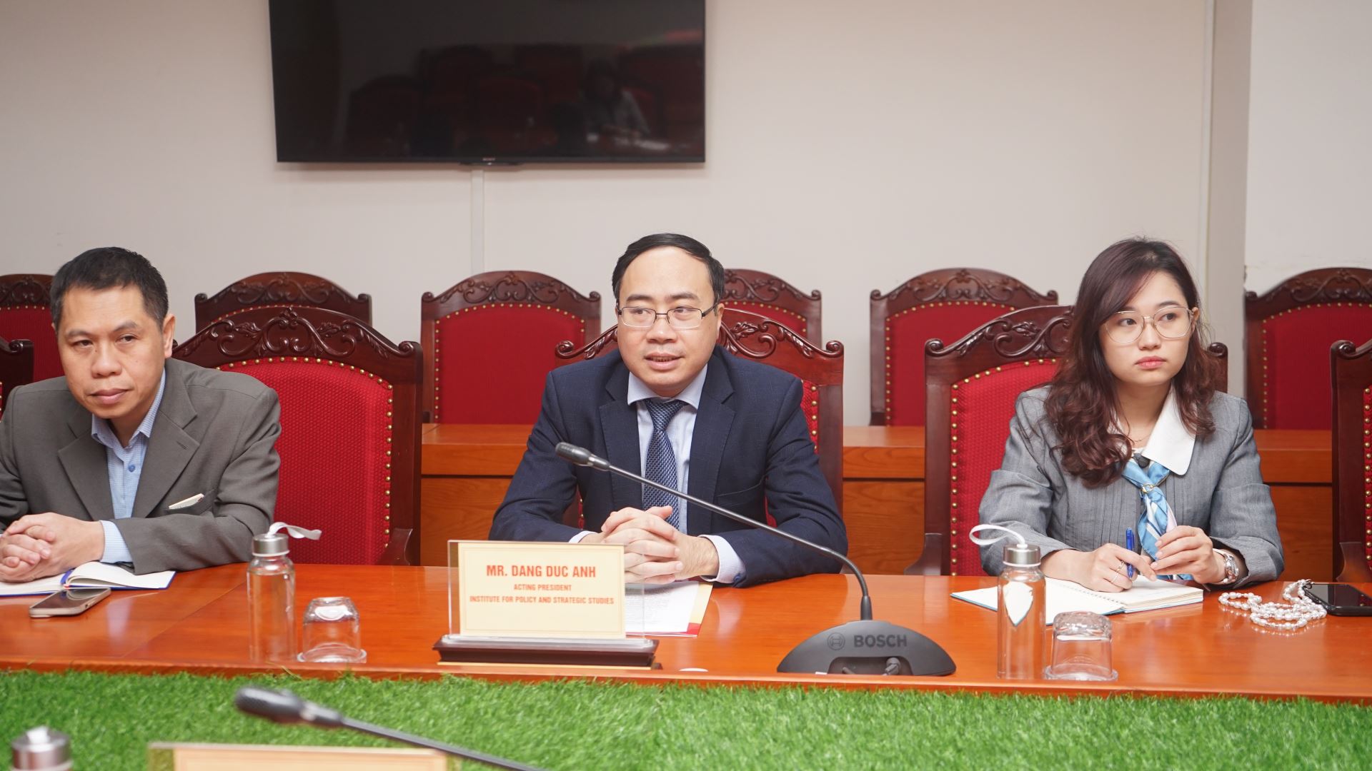 Đồng chí Đặng Đức Anh chào mừng Ngài Đại sứ cùng đoàn công tác đến thăm và làm việc với Viện Nghiên cứu Chính sách và Chiến lược (IPSS) – Ban Chính sách, chiến lược Trung ương. Đồng chí Quyền Viện trưởng cảm ơn tới Ngài Đại sứ đã luôn quan tâm, ủng hộ các hoạt động của Ban và của Viện, cũng như các sự kiện do Ban và Viện tổ chức trong thời gian qua. Tại buổi làm việc, Viện mong muốn được lắng nghe những chia sẻ và trao đổi về các nội dung mà Đại sứ quan tâm.
