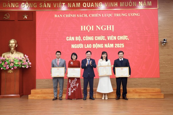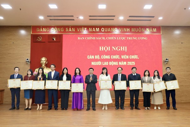 Hội nghị cũng đã công bố và trao tặng các danh hiệu thi đua - khen thưởng năm 2025 của Ban Chính sách, chiến lược Trung ương cho các tập thể và cá nhân xuất sắc.