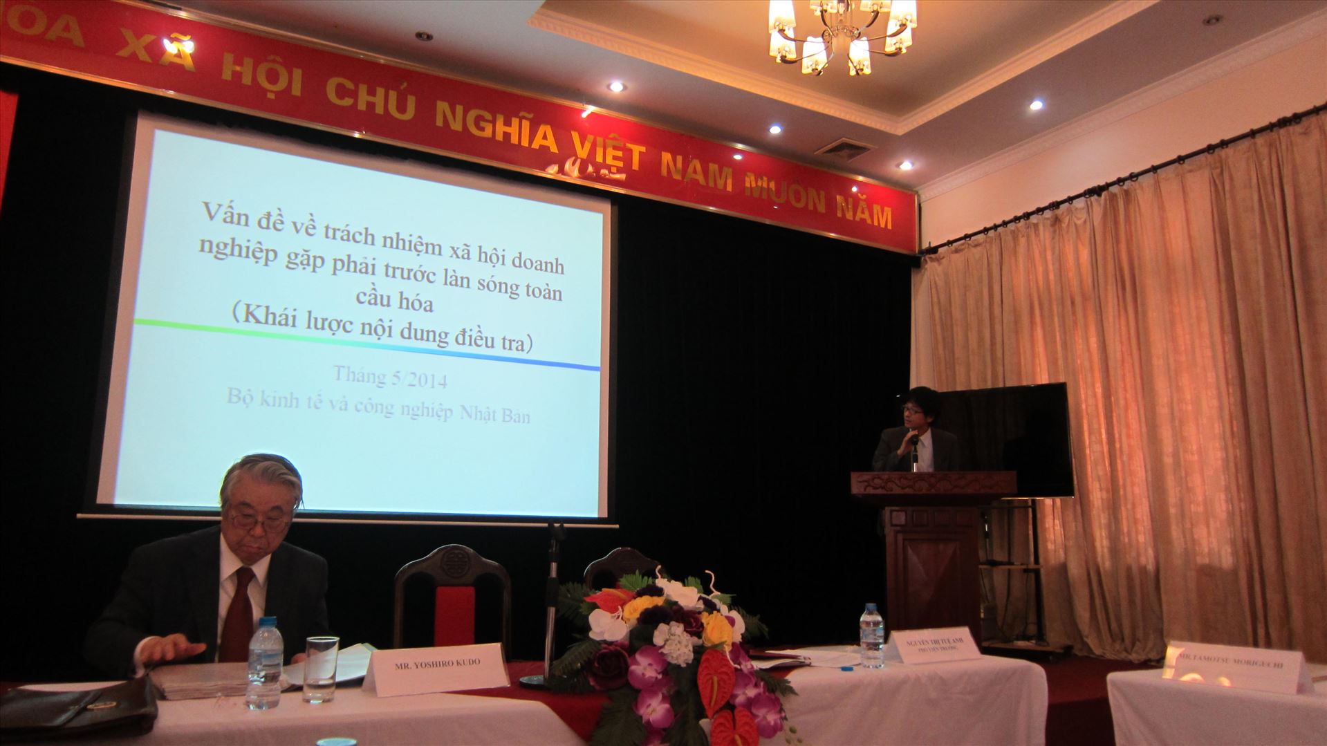 Tại Hội thảo, ông Tamotsu Moriguchi – Phòng Kế toán doanh nghiệp, Cục Chính sách công nghiệp thương mại, Bộ Công nghiệp Thương mại Nhật Bản trình bày những vấn đề lý luận chung về trách nhiệm xã hội của doanh nghiệp. Theo đó, tư duy cơ bản khi thực hiện trách nhiệm xã hội của doanh nghiệp là đối thoại, cam kết với các bên liên quan; đầu tư cho sự phát triển bền vững xã hội và môi trường; tổ chức hoạt động một cách có chiến lược, hướng đến sự đa dạng và tự chủ; quan điểm toàn cầu; sự minh bạch và trách nhiệm giải thích. Ông Moriguchi cũng đã giới thiệu chung về Hội nghiên cứu CSR của Nhật Bản. Hội được thành lập từ năm 2004 với sự bảo trợ của Bộ Công nghiệp Thương mại Nhật bản. Đây là một mạng lưới tiêu biểu của Nhật Bản với sự tham gia của các doanh nghiệp đa quốc gia. Hàng năm, bên cạnh việc hỗ trợ doanh nghiệp thì Hội cũng đề ra các chủ đề nghiên cứu cụ thể và thực hiện nghiên cứu về hoạt động và chính sách CSR.