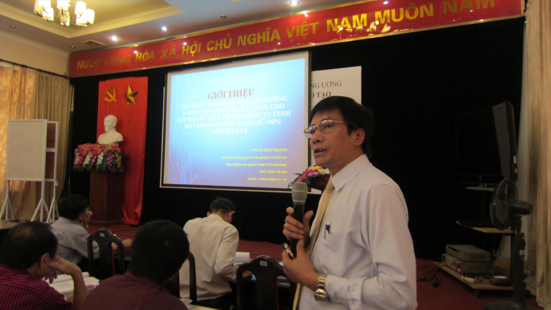 Ảnh 2: PGS. TS Trần Công Sách - Giám đốc Trung tâm Tư vấn và quản lý đào tạo, CIEM giới thiệu chương trình khóa học